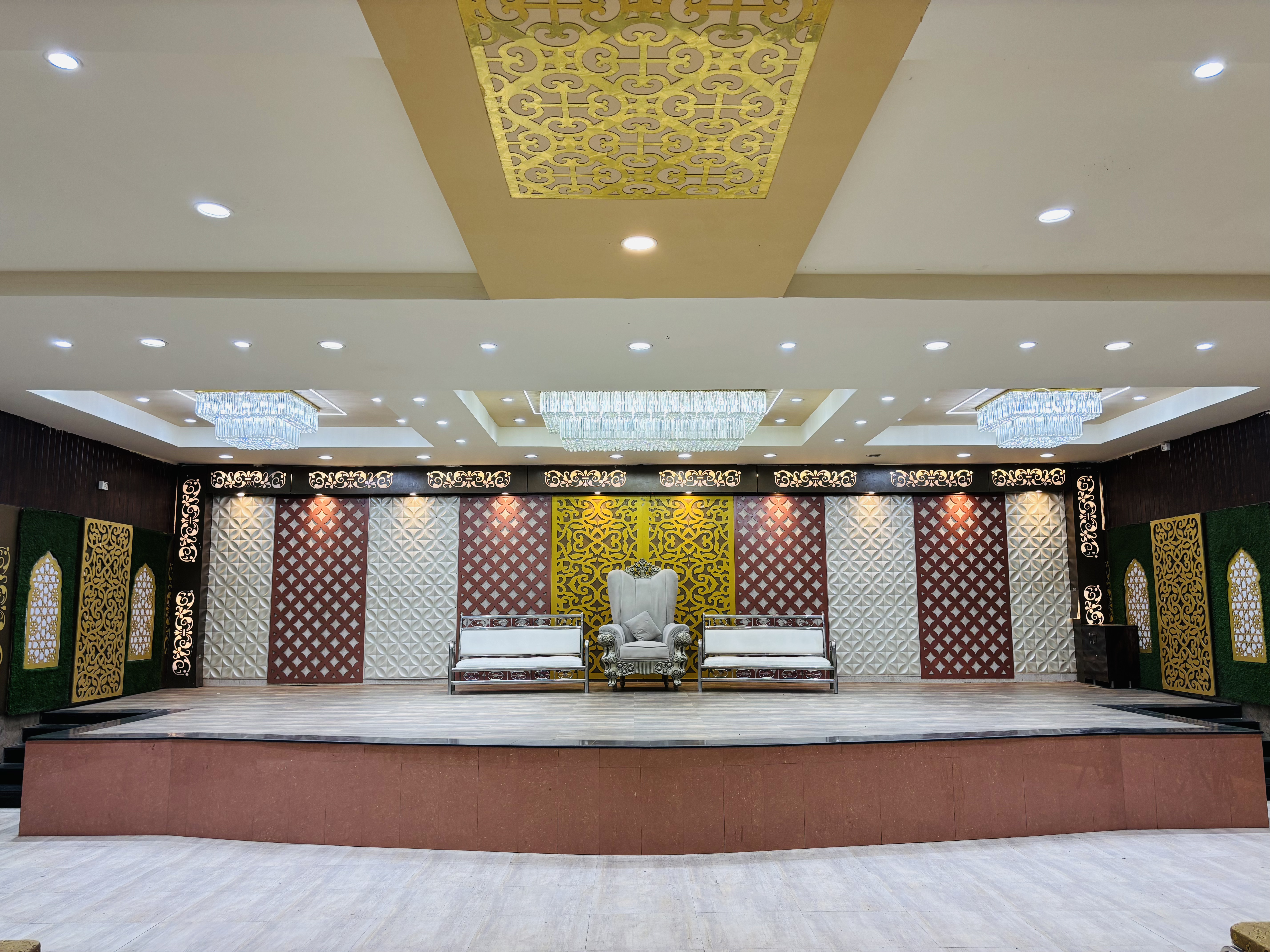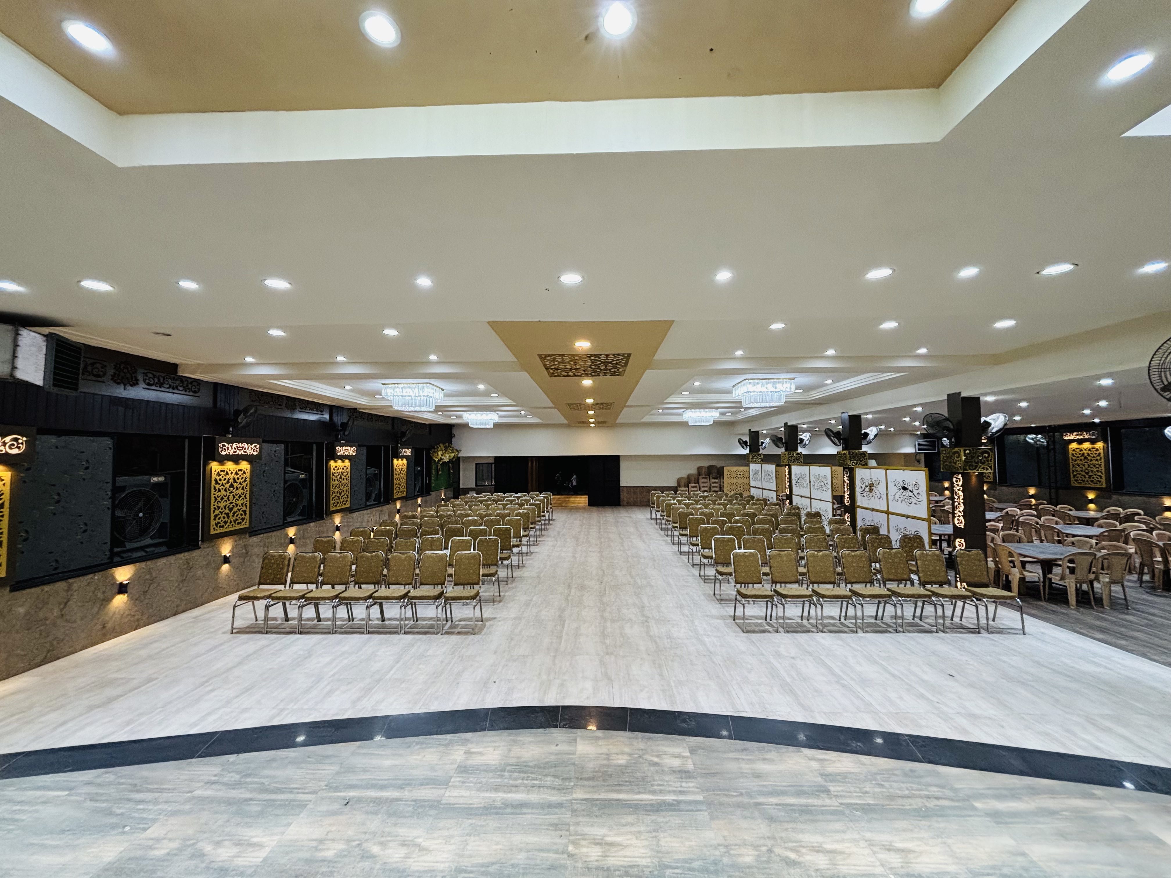 Royal Palm has two separate large halls for ladies and gents with enough lights, fans & coolers that create a perfect ambiance. It has a separate hall for vegetarians. It has a large parking space for two wheelers as well as four wheelers. It also has a big kitchen area in the center for easy supply of food to both the Halls. We have quite a big stage in both the halls which provides a great space for family members and friends to sit and have photographs. We have variety of trees planted across the border so that you can enjoy the event with pleasant environment.